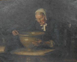 Jydepotten, gammel kone med hvidt hovedlin, 1921