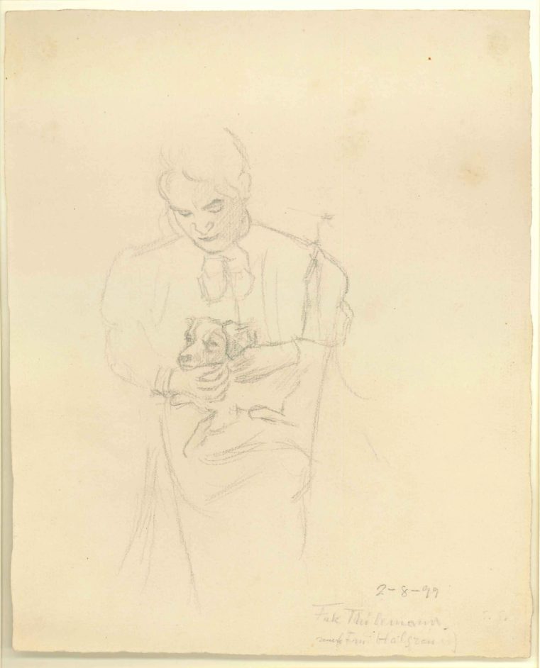 Kvinde med hund på skødet1899